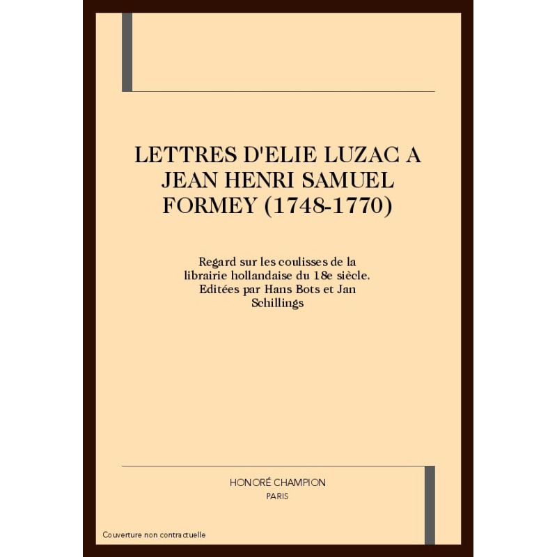 LETTRES D'ELIE LUZAC A JEAN HENRI SAMUEL FORMEY (1748-1770)
