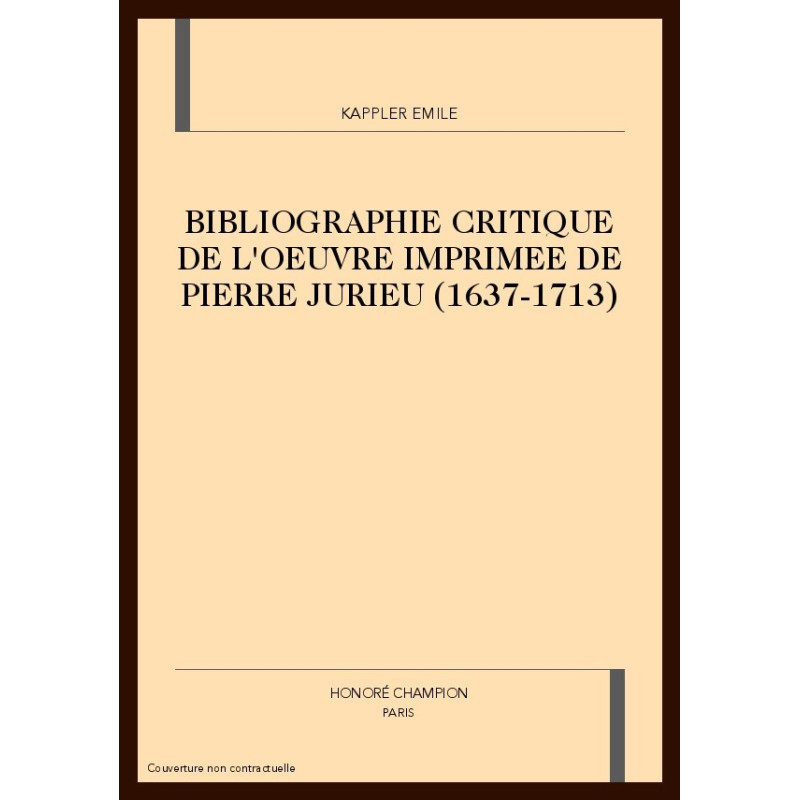 BIBLIOGRAPHIE CRITIQUE DE L'OEUVRE IMPRIMEE DE PIERRE JURIEU (1637-1713)