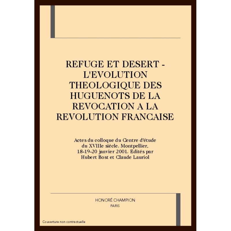 REFUGE ET DESERT - L'EVOLUTION THEOLOGIQUE DES HUGUENOTS DE LA REVOCATION A LA REVOLUTION FRANCAISE