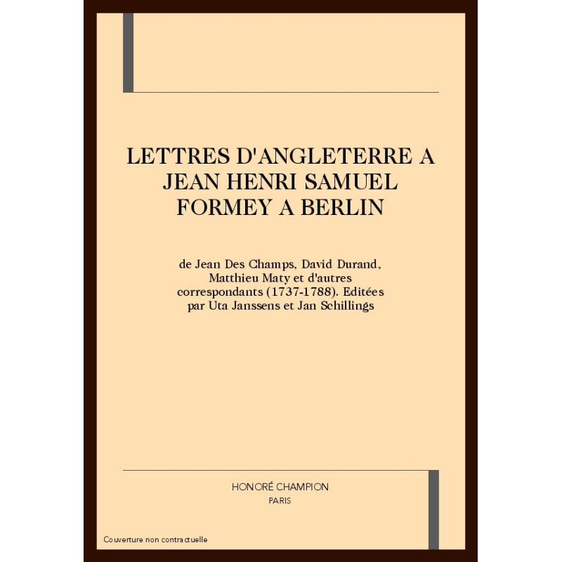 LETTRES DE L'ANGLETERRE A JEAN HENRI SAMUEL FORMEY A BERLIN DE JEAN DES CHAMPS, DAVID DURAND, MATHIEU MATY