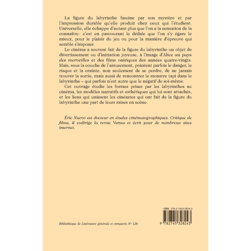 The labyrinth has often been used in films to provide entertainment or joyful initiation. But danger and fear (of getting lost, never getting out, or meeting the lurking monster) occasionally surface. This book is an exploration of this proteiform trope and of the filmmakers who have used it in their work.