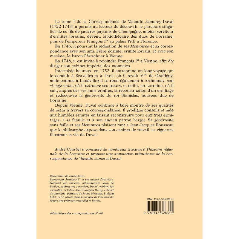 Tome II of Valentin Jamerey-Duval’s correspondence shows him writing his Memoirs, joining Holy Roman Emperor Francis I in Vienna, reuniting with his friend Mme de Graffigny, his sisters and his hermit friends, and generally displaying his infallible generosity, liberally offering advice and assistance.