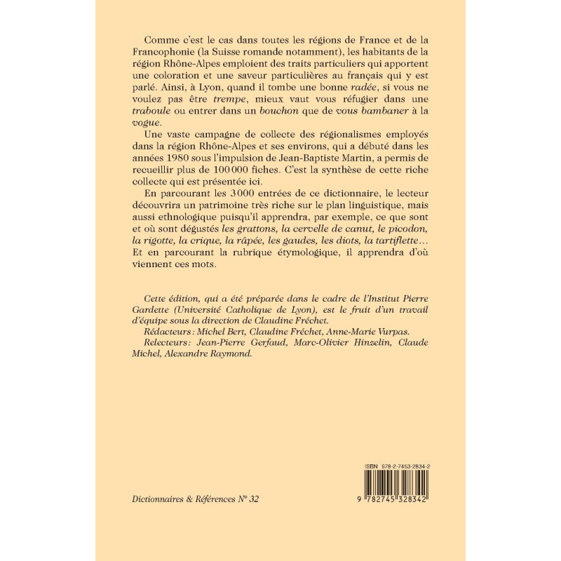 As in all parts of the French-speaking world, the inhabitants of the Rhône-Alpes region have developed specific linguistic traits that bring delectable flavor and local color to the language. This dictionary features 3000 entries, all of them rife with ethnological and etymological information.