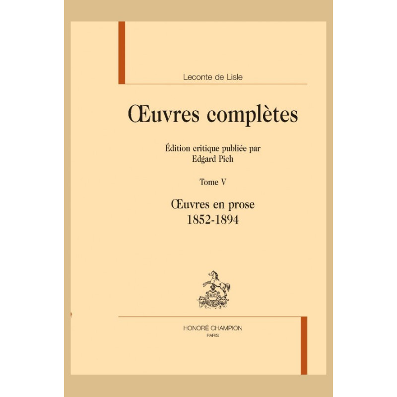 Tome V of Leconte de Lisle’s Complete Works (the final one) is both a conclusion and a preface. A conclusion to the previous four, because it provides an indispensable prose companion (his “popular” pieces) to the works in verse, and a preface to his translations, which should also be regarded as masterpieces.