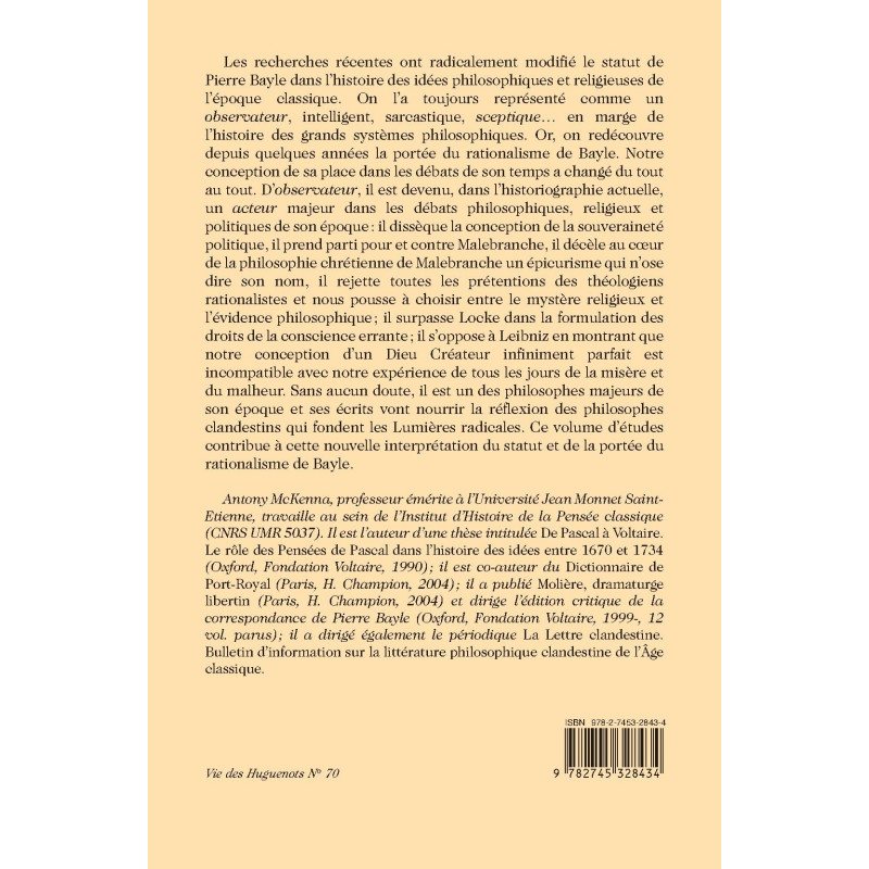 Pierre Bayle’s status in the philosophical, religious and political debates of his times has been radically altered of late: once presented as a mere observer, he now appears as one of their key players. This collection of studies contributes to this new interpretation of the import of Bayle’s rationalism.