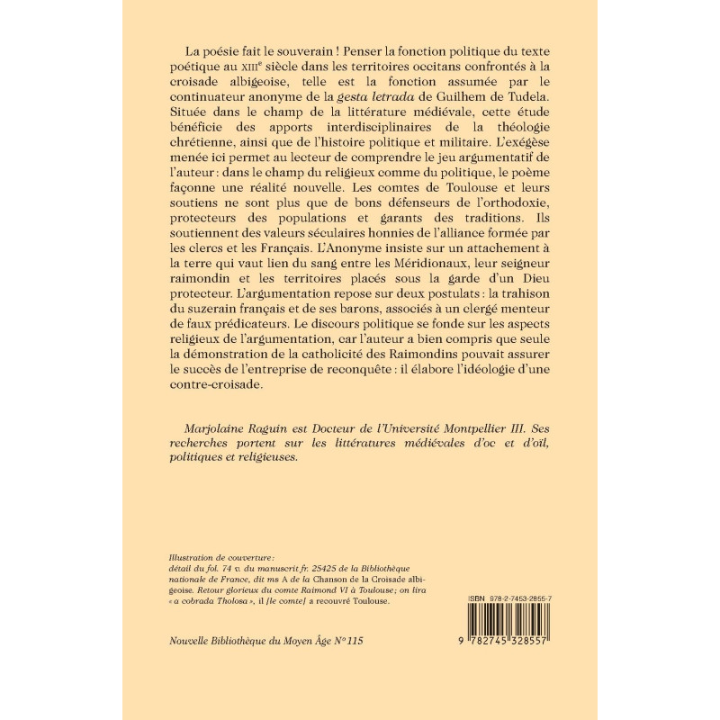 This detailed analysis of the religious and political propaganda in the anonymously authored section of the Song of the Albigensian Crusade shows how the betrayal of the French suzerain and the association of its barons with a lying clergy of false preachers led the author to outline the ideology of a counter-crusade.