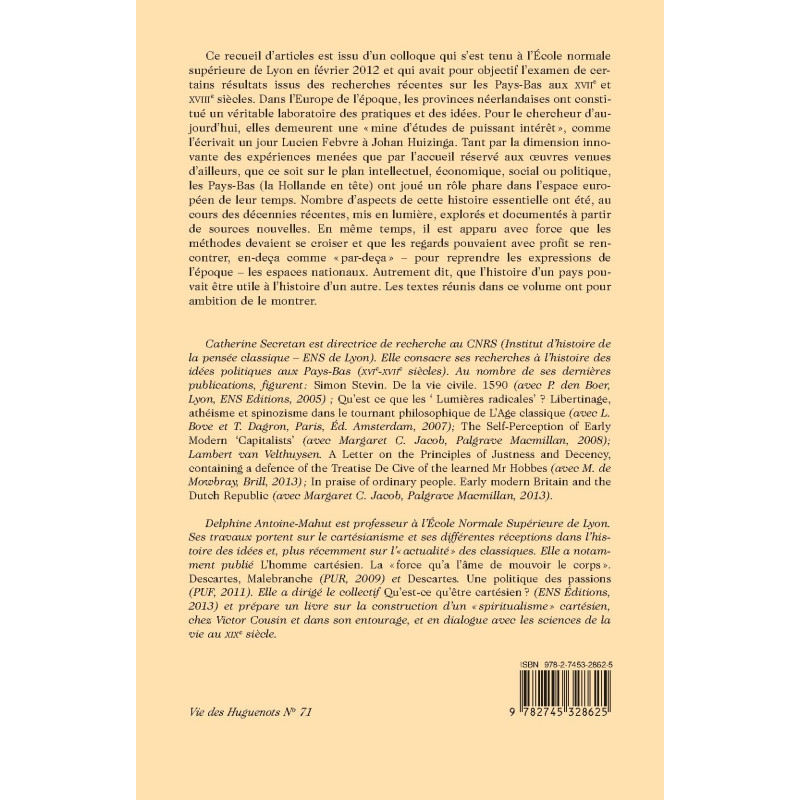 In the 17th and 18th centuries, the Netherlands were a veritable laboratory of intellectual, economic, social and political ideas and practices. The aim of this 2012 conference was to assess the results of recent research on the subject from a variety of national perspectives, using a variety of methods.
