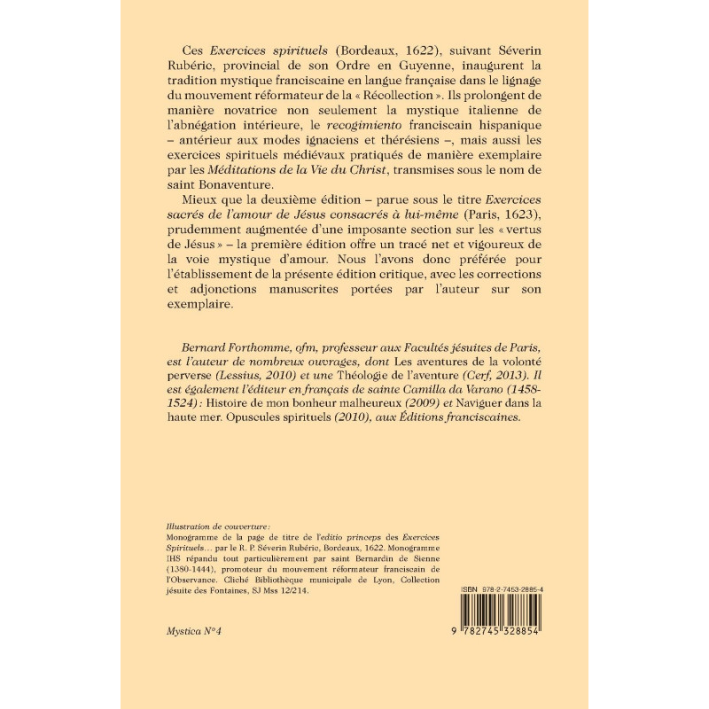 The Spiritual Exercises by Séverin Rubéric (a 17th-century reformed Franciscan) made a significant contribution to modern French-language mysticism. Although they follow the traditional method of the Triple Way, they revamp it by turning the figure of Mary Magdalene into a scriptural stand-in for Saint Francis of Assisi.