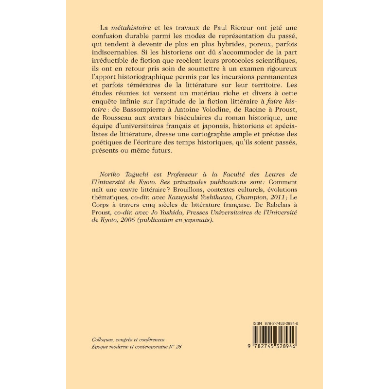 The different modes of representing the past are proving increasingly hybrid and porous. Historians have acknowledged that their scientific processes contain an unavoidable element of fiction, while literature has boldly encroached on their territory – hence the necessity to study fiction’s ability to make history.