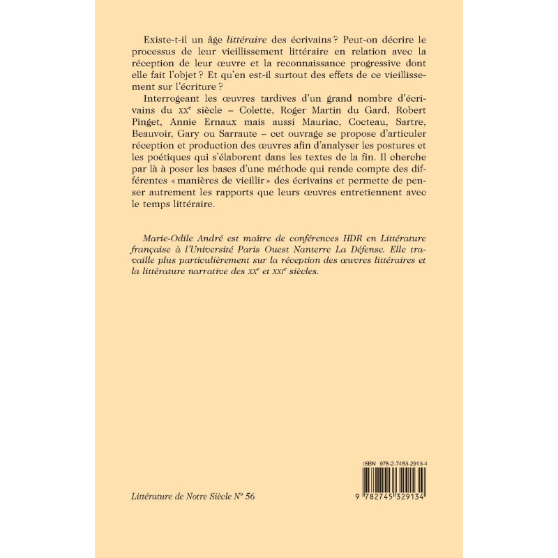 Is their such a thing as a writer’s literary age? The later works of several 20th-century writers are here examined to analyze the poetics and the attitudes that emerge towards the end. This study aims to describe different ways in which writers can age, and in which their works relate to literary time.