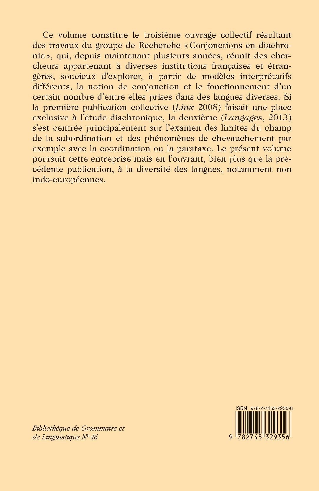 This is the 3rd volume stemming from the work of the “Conjonctions en diachronie” research group. Much like the 2nd one, it focuses on the limits of the domain of subordination and its overlap with such notions as coordination and parataxis, but extends the study to a far wider array of languages.