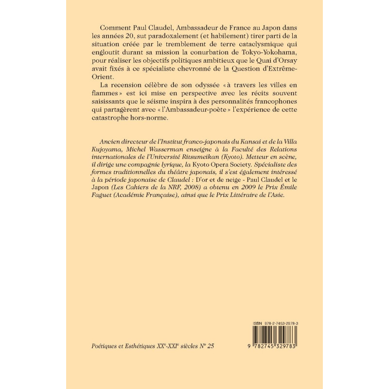 This work recounts how Paul Claudel, then the French ambassador to Japan, paradoxically (and shrewdly) managed to take advantage of the 1923 earthquake that razed Tokyo and Yokohama to the ground to meet the ambitious political objectives assigned to him by the Foreign Affairs Ministry.
