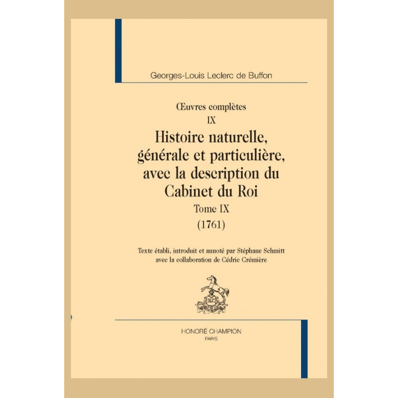 Le neuvième tome de l’Histoire naturelle, générale et particulière est publié en 1761. Buffon et Daubenton y poursuivent la description des quadrupèdes exotiques entamée dans le tome précédent. Ils traitent ici d’animaux carnassiers étrangers, en commençant par une série de félins d’Afrique, d’Asie et d’Amérique : le lion, le tigre, la panthère, l’once, le jaguar, le cougar, le lynx et le caracal, qui sont suivis de quelques autres espèces, l’hyène, la civette, le zibet, la genette et le loup noir. Cette succession constitue, en quelque sorte, un parallèle avec celle des espèces prédatrices d’Europe au début du septième tome de 1758.