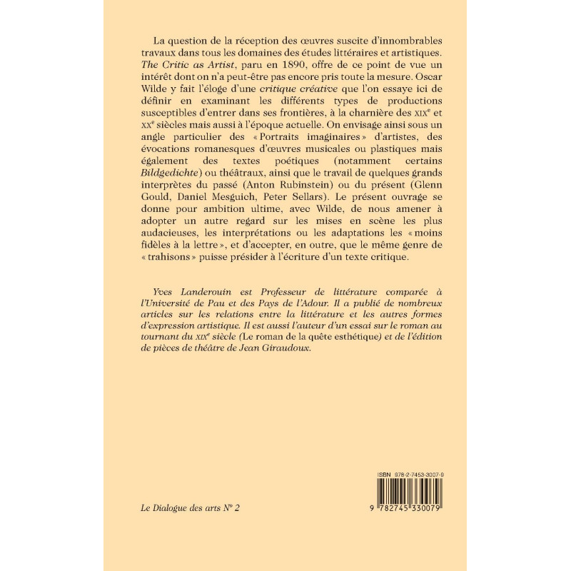 This essay parses the many incarnations of “creative criticism”, as defined by Oscar Wilde in The Critic as Artist. It aims to change the reader’s perception of the most audacious theatrical productions and the least faithful adaptations, suggesting that such “treasons” may even be valid in critical texts.