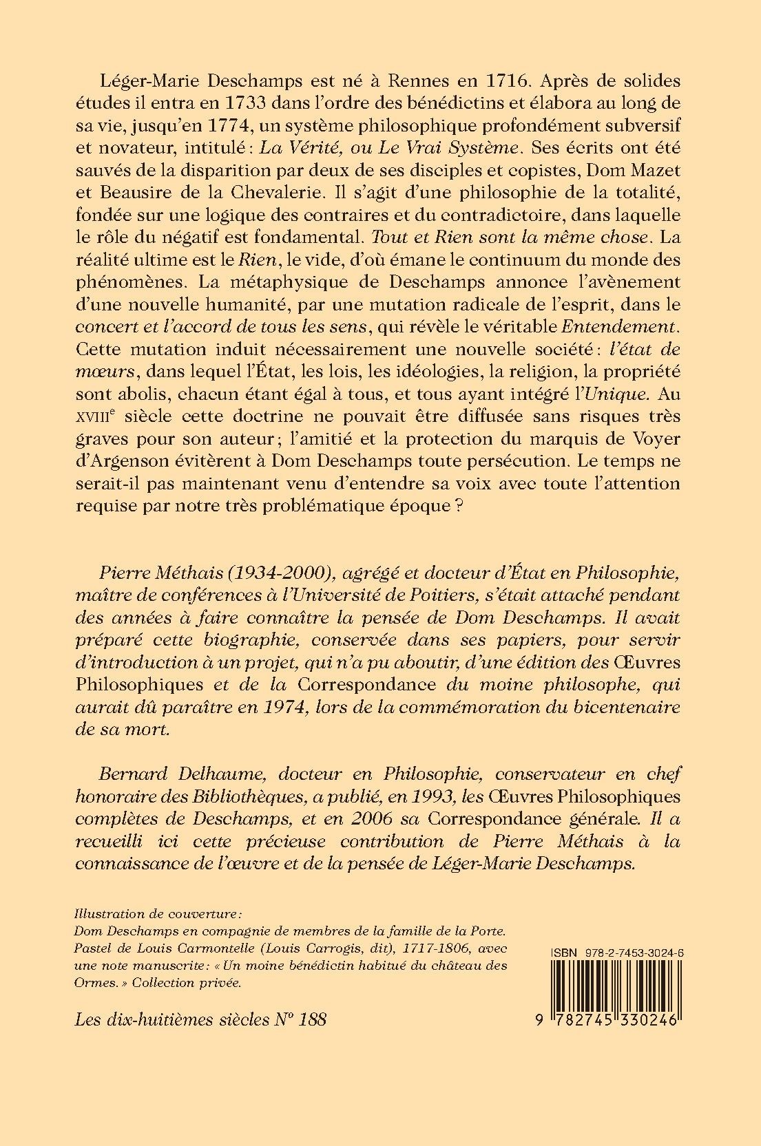 Dom Léger-Marie Deschamps developed a profoundly subversive and innovative philosophical system, which heralded the advent of a new humanity and a new society, in which the State, laws, ideologies, religion and property would be abolished – a most dangerous proposition at the time for its author.