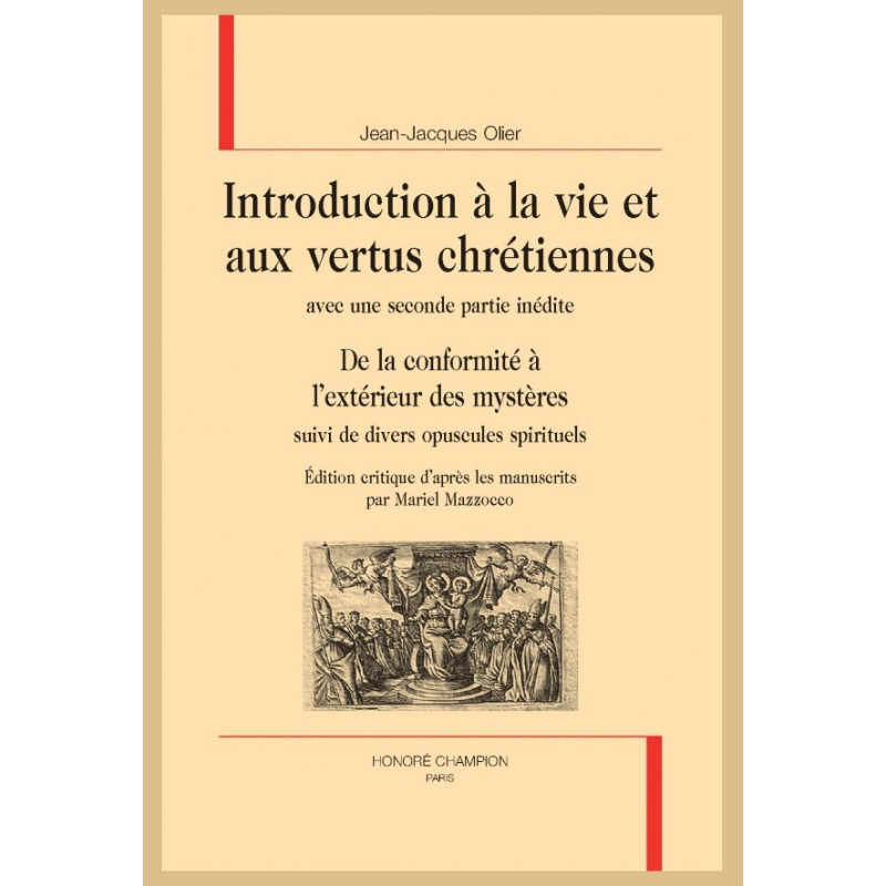 Publiée l’année même de la mort de Jean-Jacques Olier (1608- 1657), fondateur de Saint-Sulpice, l’Introduction à la vie et aux vertus chrétiennes est généralement considérée comme un traité de la maturité, le dernier de ses écrits. Mariel Mazzocco livre ici la première édition critique de ce texte fameux, découvrant à partir des manuscrits qu’il s’agit en réalité d’une compilation d’écrits sur la vie spirituelle rédigés à partir de 1642 ; elle révèle en outre une « seconde partie » restée entièrement inédite : un temps attribué à Charles de Condren, ce manuscrit intitulé De la conformité à l’extérieur des mystères avait été établi par les confrères d’Olier à partir de plusieurs fragments autographes. Invitation à la « vraie humilité » qui «donne le désir d’être caché, retiré, inconnu », l’Introduction à la vie et aux vertus chrétiennes connut donc une double forme d’invisibilité. La partie imprimée disparaît tout au long du Siècle des Lumières et jusqu’à la moitié du XIXe siècle. La deuxième partie inédite est engloutie dans l’oubli pendant plus de trois siècles et demi. Cette histoire éditoriale semble ainsi reproduire l’itinéraire spirituel de l’âme anéantie, qui prend soin de ne paraître en rien afin de s’ouvrir à l’Autre et renaître dans le pur amour.