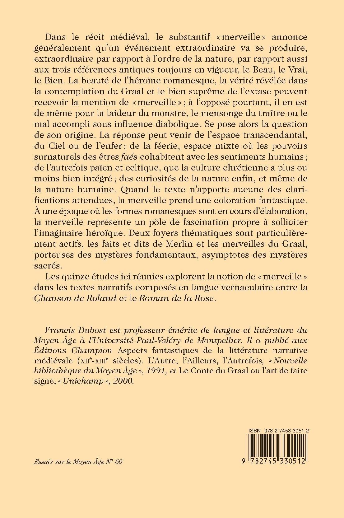 The 15 contributions to this volume tackle the notion of “merveille” (instances of the “marvelous”, something that is extraordinary with regards to the natural order or to the three reference points inherited from Antiquity: what is beautiful, good and true) in narrative texts from the 12th and 13th centuries.