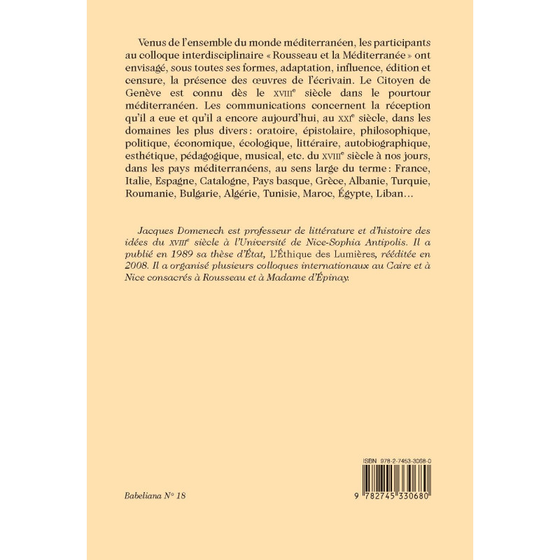 The proceedings from this interdisciplinary conference on Rousseau’s reception in Mediterranean countries tackle the author’s presence from the 18th to the 21st century in a variety of forms (adaptation, influence, edition, censorship) and a variety of fields (from philosophy to economics, aesthetics and beyond).
