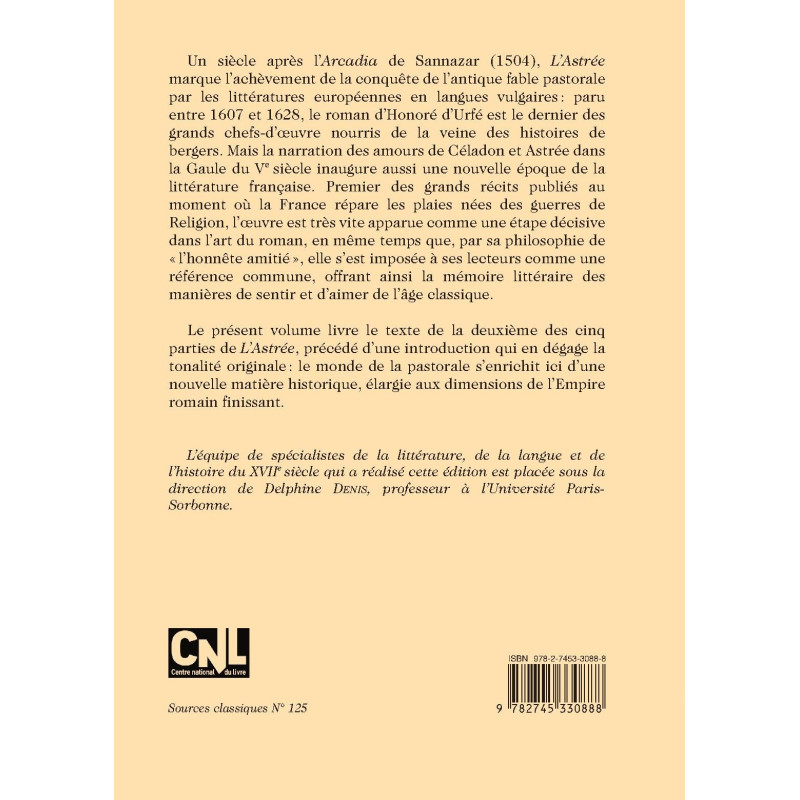 Un siècle après l’Arcadia de Sannazar (1504), L’Astrée marque l’achèvement de la conquête de l’antique fable pastorale par les littératures européennes en langues vulgaires : paru entre 1607 et 1628, le roman d’Honoré d’Urfé est le dernier des grands chefs-d'œuvre nourris de la veine des histoires de bergers. Mais la narration des amours de Céladon et Astrée dans la Gaule du Ve siècle inaugure aussi une nouvelle époque de la littérature française. Premier des grands récits publiés au moment où la France répare les plaies nées des guerres de Religion, l’œuvre est très vite apparue comme une étape décisive dans l’art du roman, en même temps que, par sa philosophie de « l’honnête amitié », elle s’est imposée à ses lecteurs comme une référence commune, offrant ainsi la mémoire littéraire des manières de sentir et d’aimer de l’âge classique. Le présent volume livre le texte de la deuxième des cinq parties de L’Astrée, précédé d’une introduction qui en dégage la tonalité originale : le monde de la pastorale s’enrichit ici d’une nouvelle matière historique, élargie aux dimensions de l’Empire romain finissant.