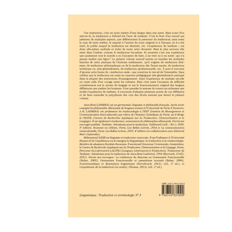 This collection looks at the act of translating from a wide variety of perspectives, a plural approach which is well-suited to the polymorphous nature (be it literary, technical, sacred, professional or otherwise) of an experience that is nearly universal: who has never translated at least one line?
