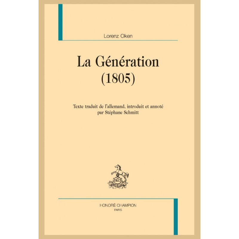 Le naturaliste allemand Lorenz Oken (1779-1851) est l’un des principaux représentants de la Naturphilosophie, un courant de pensée extrêmement florissant dans l’Allemagne des premières décennies du XIXe siècle et impliquant tous les domaines de la production intellectuelle. Inspiré par les principes philosophiques de Schelling, Oken s’emploie à les appliquer aux sciences de la nature et édifie ainsi toute une biologie sur ces fondements. Il s’intéresse en particulier au problème de la reproduction et du développement des êtres vivants, qui a suscité de vives controverses tout au long du XVIIIe siècle. Dans La Génération (1805), ouvrage traduit ici pour la première fois, il réexamine les données du débat et propose une théorie entièrement nouvelle : selon lui, la génération n’est autre qu’une agglomération de composés élémentaires du vivant, les « infusoires », qui s’assemblent lors du développement et de la croissance, puis se dissocient de nouveau à la mort de l’individu, suivant ainsi un cycle éternel. Cette idée le conduit, notamment, à repenser l’ordre de la nature, mais aussi la signification et l’origine de la sexualité.