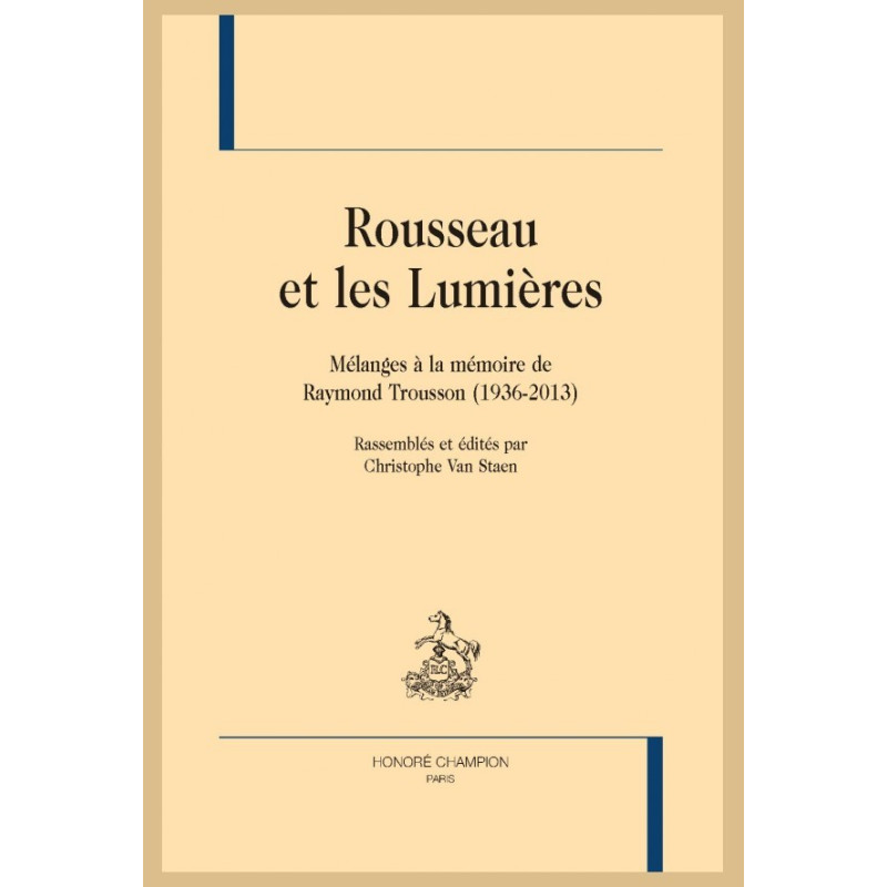 These contributions on Rousseau and the Enlightenment are gathered here in memory of Raymond Trousson, one of the foremost experts on the 18th century, an indefatigable researcher and extraordinary conveyor of knowledge, who left an indelible imprint on his colleagues, disciples and students.