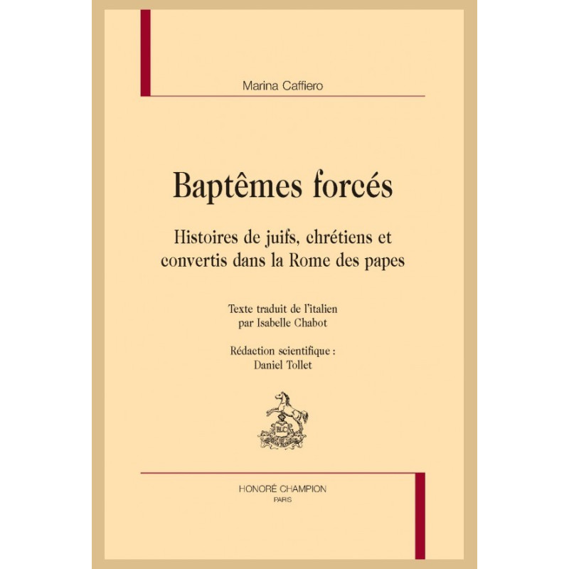 Dans cet ouvrage, sortent de l’oubli, des juifs baptisés clandestinement dans leur enfance et enlevés à leur famille, des juifs dénoncés sous prétexte qu’ils auraient exprimé la volonté de se convertir, des juifs « offerts » à la religion chrétienne. Entre le XVIe et le XIXe siècle, en Italie comme dans toute l’Europe, les baptêmes forcés représentaient un phénomène social et culturel de grande importance se situant à l’origine des nombreux préjugés antisémites. L’analyse de ce phénomène permet de comprendre les racines historiques de l’antisémitisme politique des XIXe et XXe siècles et soulève des questions cruciales concernant l’histoire de la société européenne, notamment les problèmes politiques et idéologiques dus à la cohabitation de différentes religions et au rôle joué par les autorités ecclésiastiques. L’ouvrage qui porte une attention particulière à la ville de Rome, s’appuie sur une documentation très riche, entièrement inédite, provenant principalement des archives du Saint-Office.