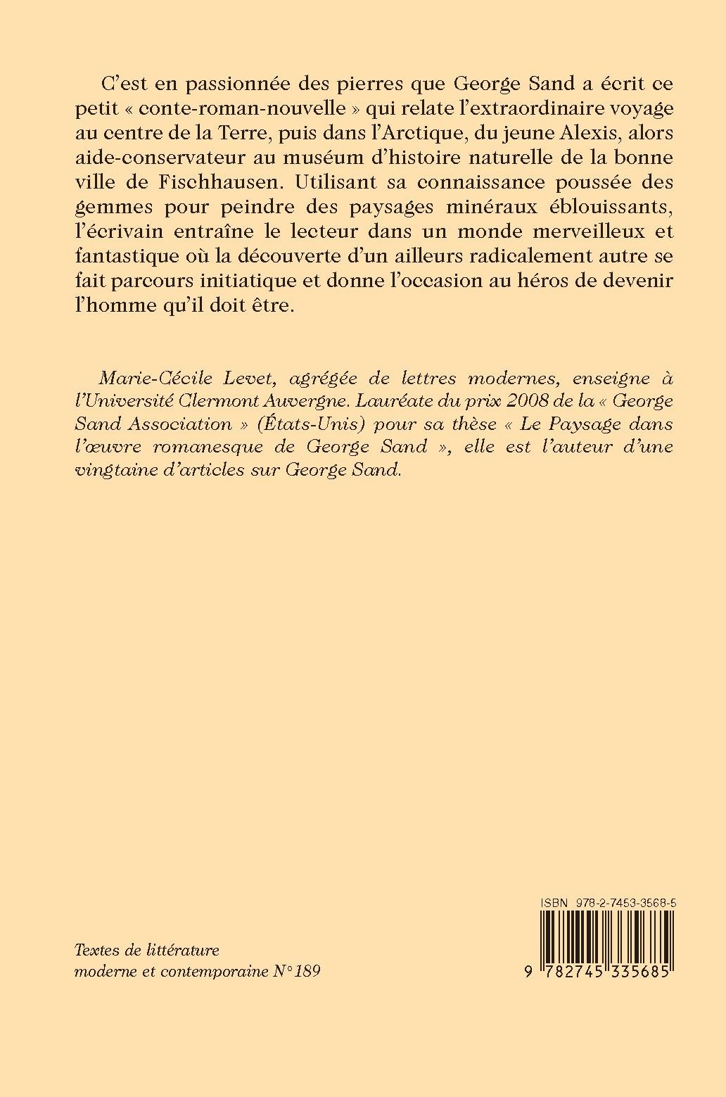 C’est en passionnée des pierres que George Sand a écrit ce petit « conte-roman-nouvelle » qui relate l’extraordinaire voyage au centre de la Terre, puis dans l’Arctique, du jeune Alexis, alors aide-conservateur au muséum d’histoire naturelle de la bonne ville de Fischhausen. Utilisant sa connaissance poussée des gemmes pour peindre des paysages minéraux éblouissants, l’écrivain entraîne le lecteur dans un monde merveilleux et fantastique où la découverte d’un ailleurs radicalement autre se fait parcours initiatique et donne l’occasion au héros de devenir l’homme qu’il doit être.