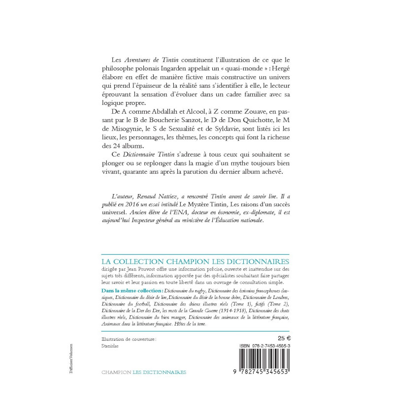 Ce Dictionnaire Tintin s’adresse à tous ceux qui souhaitent se plonger ou se replonger dans la magie d’un mythe toujours bien vivant, quarante ans après la parution du dernier album achevé.