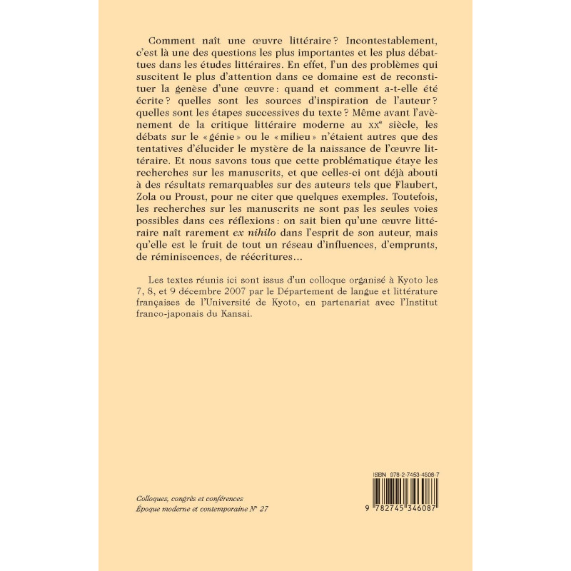 Comment naît une oeuvre littéraire ? Incontestablement, c’est là une des questions les plus importantes et les plus débattues dans les études littéraires. En effet, l’un des problèmes qui suscitent le plus d’attention dans ce domaine est de reconstituer la genèse d’une oeuvre : quand et comment a-t-elle été écrite ? quelles sont les sources d’inspiration de l’auteur ? quelles sont les étapes successives du texte ? Même avant l’avènement de la critique littéraire moderne au XXe siècle, les débats sur le « génie » ou le « milieu » n’étaient autres que des tentatives d’élucider le mystère de la naissance de l’oeuvre littéraire. Et nous savons tous que cette problématique étaye les recherches sur les manuscrits, et que celles-ci ont déjà abouti à des résultats remarquables sur des auteurs tels que Flaubert, Zola ou Proust, pour ne citer que quelques exemples. Toutefois, les recherches sur les manuscrits ne sont pas les seules voies possibles dans ces réflexions : on sait bien qu’une oeuvre littéraire naît rarement ex nihilo dans l’esprit de son auteur, mais qu’elle est le fruit de tout un réseau d’influences, d’emprunts, de réminiscences, de réécritures…