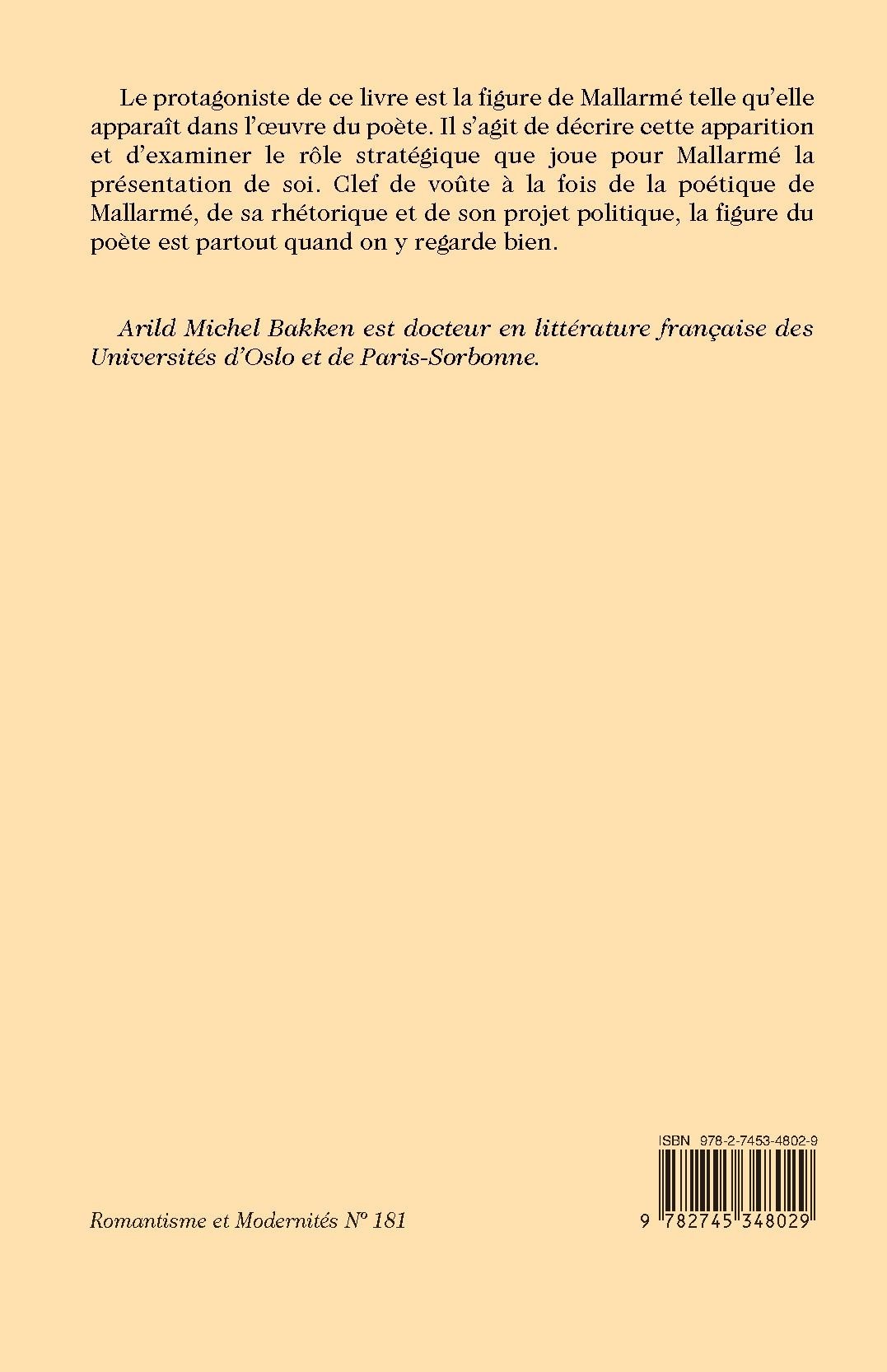 Le protagoniste de ce livre est la figure de Mallarmé telle qu’elle apparaît dans l’oeuvre du poète. Il s’agit de décrire cette apparition et d’examiner le rôle stratégique que joue pour Mallarmé la présentation de soi. Clef de voûte à la fois de la poétique de Mallarmé, de sa rhétorique et de son projet politique, la figure du poète est partout quand on y regarde bien.