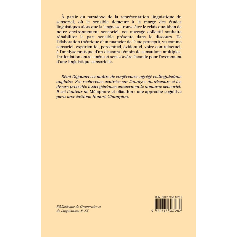 À partir du paradoxe de la représentation linguistique du sensoriel, où le sensible demeure à la marge des études linguistiques alors que la langue se trouve être le relais quotidien de notre environnement sensoriel, cet ouvrage collectif souhaite réhabiliter la part sensible présente dans le discours. De l’élaboration théorique d’un nuancier de l’acte perceptif, vu comme sensoriel, expérientiel, perceptuel, évidentiel, voire contrefactuel, à l’analyse pratique d’un discours témoin de sensations multiples, l’articulation entre langue et sens s’avère féconde pour l’avènement d’une linguistique sensorielle.