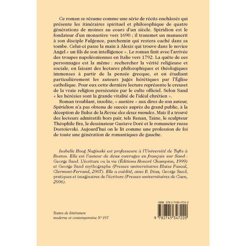 Isabelle Hoog Naginski est professeure à l’Université de Tufts à Boston. Elle est l’auteur de deux ouvrages en français sur Sand : George Sand. L’écriture ou la vie (Éditions Honoré Champion, 1999) et George Sand mythographe (Presses universitaires Blaise Pascal, Clermont-Ferrand, 2007). Elle a coédité, avec B. Diaz, George Sand, pratiques et imaginaires de l’écriture (Presses universitaires de Caen, 2006).