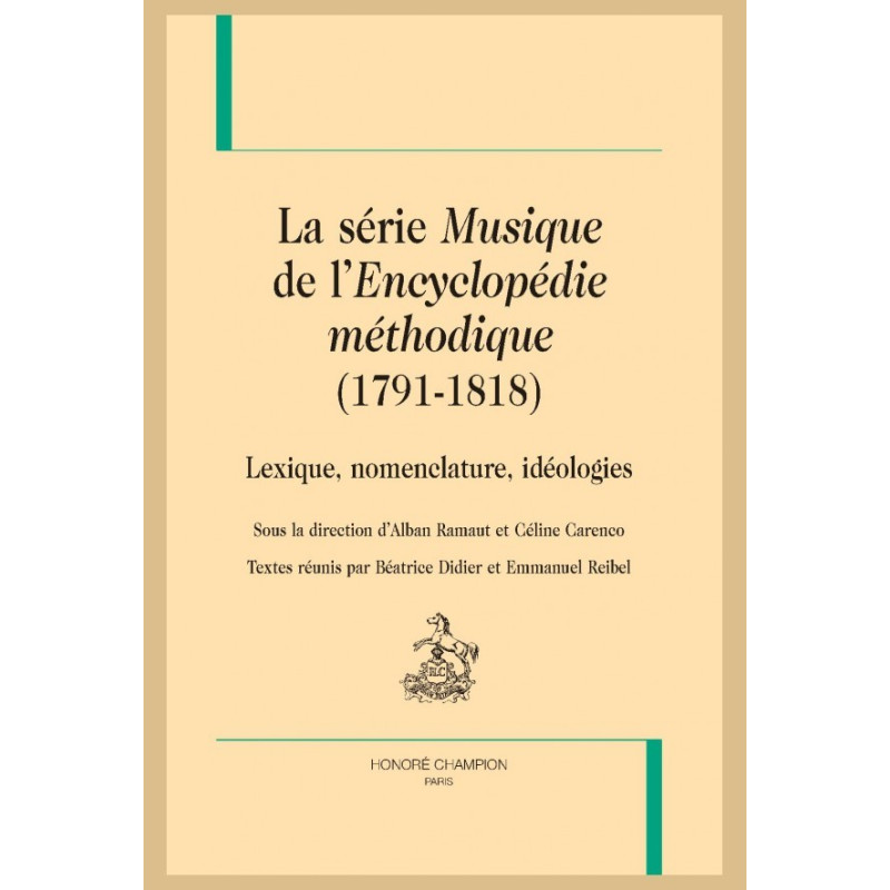 Pensés à l’orée du XIXe siècle comme des outils de fixation, d’expansion et d’investigation scientifique du lexique et de la nomenclature de la musique, les deux volumes Musique de l’Encyclopédie méthodique de Panckoucke s’inscrivent dans une perspective critique du Dictionnaire de musique de Rousseau et de l’Encyclopédie. Publiés longtemps après l’impulsion initiale du projet et à vingt-sept ans d’écart, ils ne rencontrèrent aucun succès.
