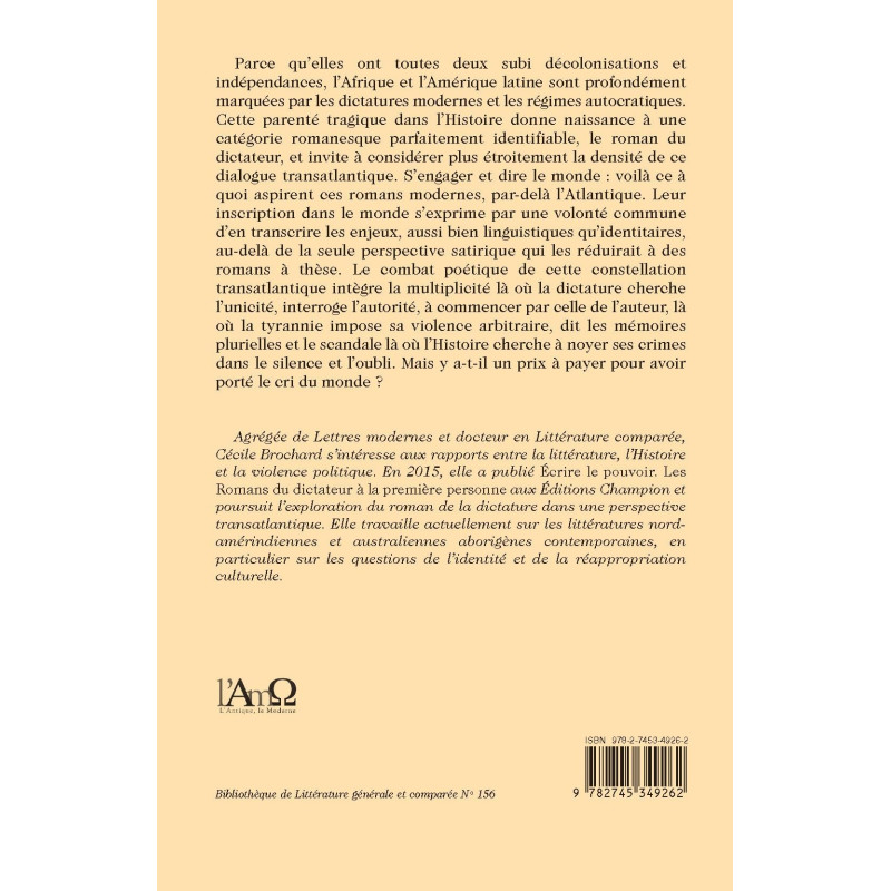Parce qu’elles ont toutes deux subi décolonisations et indépendances, l’Afrique et l’Amérique latine sont profondément marquées par les dictatures modernes et les régimes autocratiques. Cette parenté tragique dans l’Histoire donne naissance à une catégorie romanesque parfaitement identifiable, le roman du dictateur, et invite à considérer plus étroitement la densité de ce dialogue transatlantique. S’engager et dire le monde : voilà ce à quoi aspirent ces romans modernes, par-delà l’Atlantique. Leur inscription dans le monde s’exprime par une volonté commune d’en transcrire les enjeux, aussi bien linguistiques qu’identitaires, au-delà de la seule perspective satirique qui les réduirait à des romans à thèse. Le combat poétique de cette constellation transatlantique intègre la multiplicité là où la dictature cherche l’unicité, interroge l’autorité, à commencer par celle de l’auteur, là où la tyrannie impose sa violence arbitraire, dit les mémoires plurielles et le scandale là où l’Histoire cherche à noyer ses crimes dans le silence et l’oubli. Mais y a-t-il un prix à payer pour avoir porté le cri du monde ?