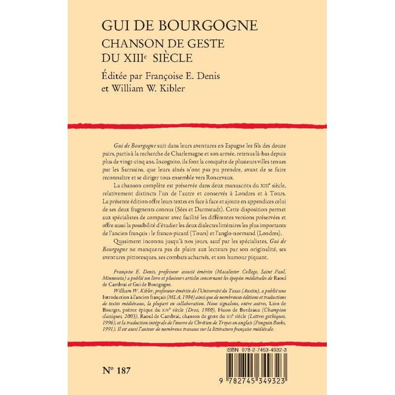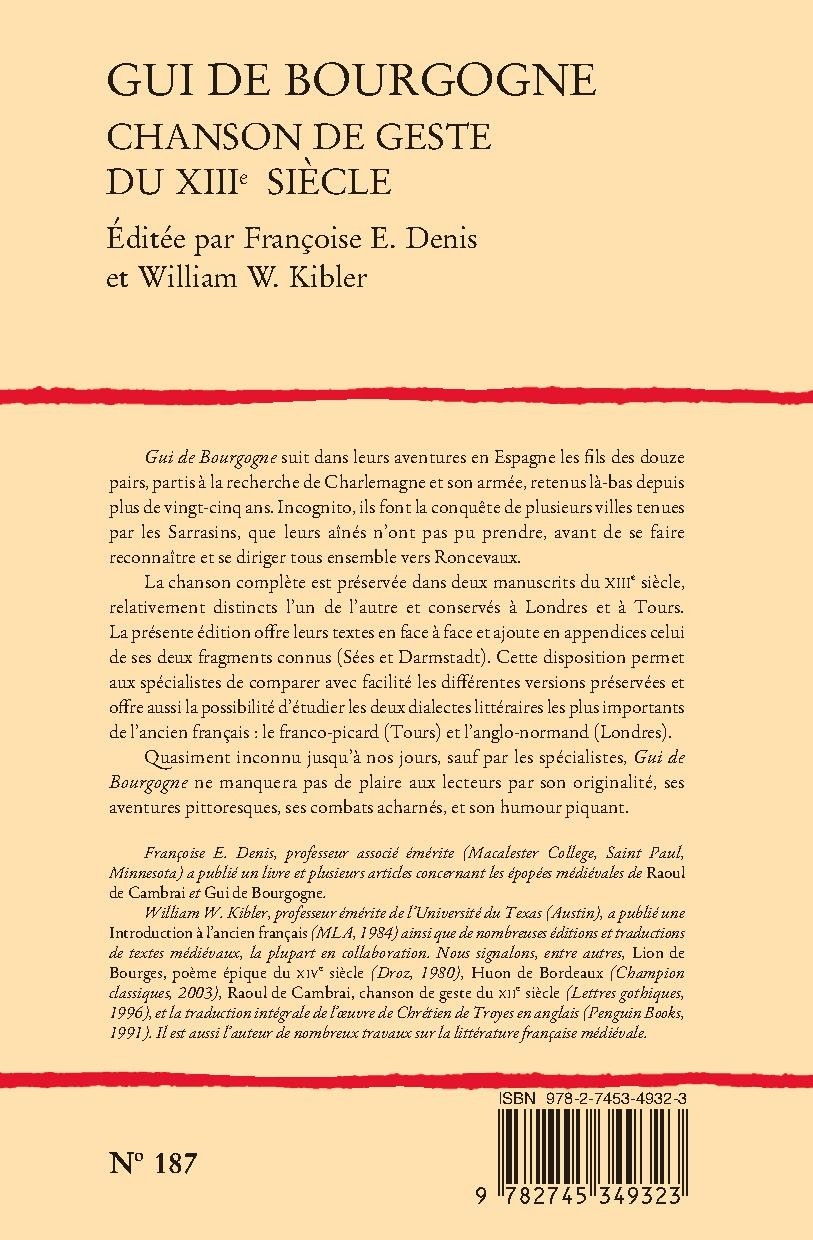 Quasiment inconnu jusqu’à nos jours, sauf par les spécialistes, Gui de Bourgogne ne manquera pas de plaire aux lecteurs par son originalité, ses aventures pittoresques, ses combats acharnés, et son humour piquant.