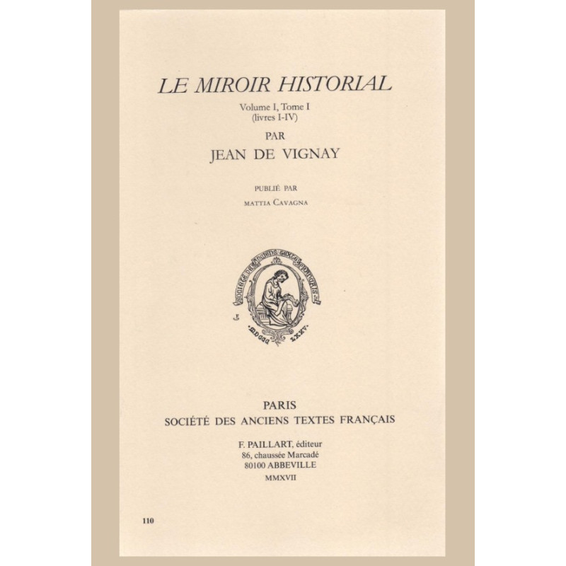 À l’instar de son modèle latin, le Speculum historiale de Vincent de Beauvais, le Miroir historial (1330-33), retrace l’histoire de l’humanité à partir de la Création. Le présent volume, qui inaugure l’édition intégrale de l’ouvrage, rassemble les 4 premiers livres (sur un total de 32) comprenant, entre autres, la traduction du Libellus apologeticus, véritable manifeste de l’encyclopédisme médiéval, le récit des six jours de la Création résumant une partie du Speculum naturale et du Speculum doctrinale, l’histoire biblique jusqu’au livre de Judith, l’histoire de l’empire perse, la présentation de plusieurs philosophes et poètes grecs, des fables ésopiques, un florilège des œuvres d’Aristote.