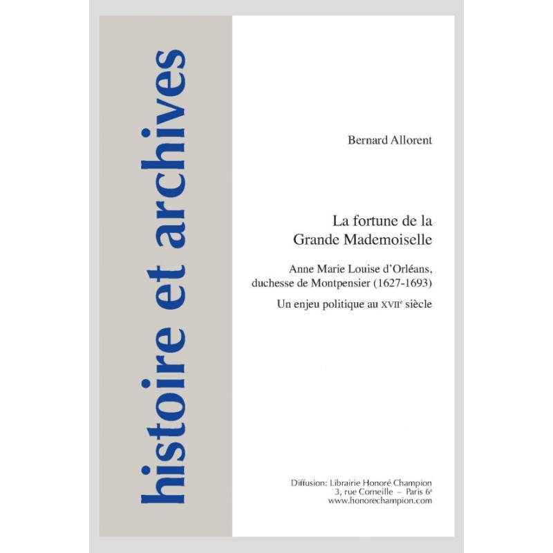 Les sources documentaires permettent de cerner les éléments qui composent sa fortune, les enjeux et les péripéties rencontrées dans les multiples facettes de sa gestion, ainsi que les acteurs de celle-ci. Elles permettent aussi d’observer le marché de la dette auquel Mademoiselle a recours à partir des années 1660, d’analyser l’origine sociale de ses prêteurs, et d’éclairer l’évolution de ce micromarché, lequel, au-delà de la conjoncture générale, est influencé par la personnalité de l’emprunteuse. Ces analyses éclairent de manière incontestable, sinon immédiatement visible, la règle stratégique qui a prévalu dans la gestion des biens de Mademoiselle : c’est l’intérêt du roi. Ce dernier s’est manifesté à chaque fois qu’il l’a pensé utile, et s’est assuré en fin de compte de la transmission des biens à des membres de sa famille proche.