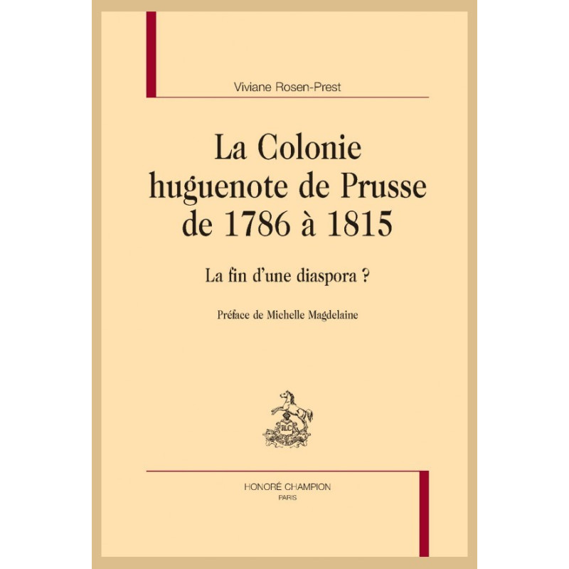 Viviane Rosen-Prest est agrégée d’allemand et docteur de l’université de Strasbourg. Elle est chercheur associé au CAECE (germanistes) de l’université de Paris-Est-Créteil. Elle a publié précédemment chez Honoré Champion sa thèse sur l’historiographie du Refuge en Prusse (2002, VH n° 23) et un ouvrage collectif, avec Geraldine Sheridan, sur les huguenots éducateurs (2011, VH n° 48).