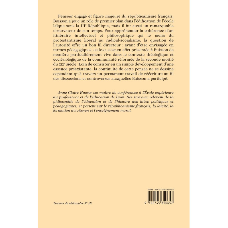 Penseur engagé et figure majeure du républicanisme français, Buisson a joué un rôle de premier plan dans l’édification de l’école laïque sous la IIIe République, mais il fut aussi un remarquable observateur de son temps. Pour appréhender la cohérence d’un itinéraire intellectuel et philosophique qui le mena du protestantisme libéral au radical-socialisme, la question de l’autorité offre un bon fil directeur : avant d’être envisagée en termes pédagogiques, celle-ci s’est en effet présentée à Buisson de manière particulièrement vive dans le contexte théologique et ecclésiologique de la communauté réformée de la seconde moitié du XIXe siècle. Loin de consister en un simple développement d’une essence préexistante, la continuité de cette pensée ne se dessine cependant qu’à travers un permanent travail de réécriture au fil des discussions et controverses auxquelles Buisson a participé.