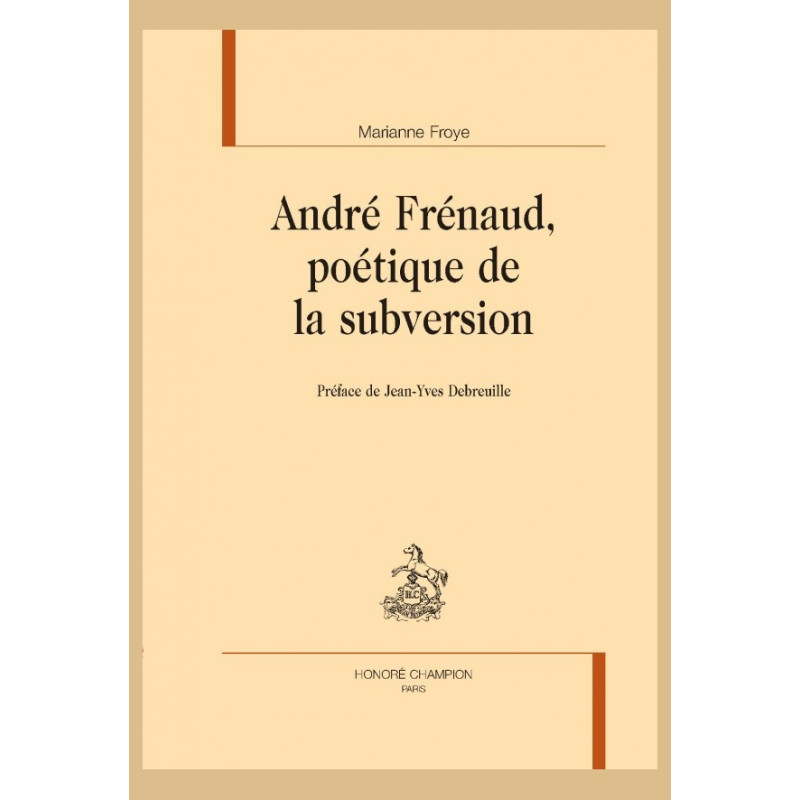 Marianne Froye, auteur d’une thèse sur André Frénaud, enseigne la littérature à l’Université de Cergy-Pontoise. Elle a codirigé l’ouvrage André Frénaud, amateur et critique d’art, Peter Lang, 2010 et a aussi publié de nombreuses études en poésie contemporaine (Henry Bauchau, Perros, Saint-John Perse, René Guy Cadou) et sur Laurent Mauvignier. Elle travaille dans le domaine des humanités numériques à la valorisation des fonds André Frénaud de la Bibliothèque Littéraire Jacques Doucet.