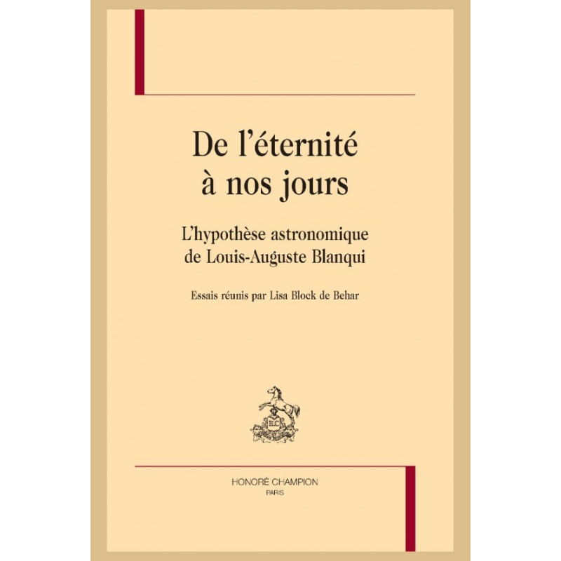 Les essais ici réunis, issus d’un colloque tenu à la Bibliothèque nationale de France et à la Maison de l’Amérique latine, à Paris, s’attachent à Blanqui, à son Éternité par les astres, et à son hypothèse astronomique fort éloignée de son radicalisme révolutionnaire. Prenant acte du fait qu’au XIXe siècle, on conciliait l’intérêt pour la recherche astronomique et la fiction, les connaissances les plus méthodiques et les rêves prophétiques, ils proposent une lecture en grande partie approbatrice de Blanqui et de son monde imaginé – répétitions, reproductions, copies et sosies promettent ou compromettent une forme d’éternité, une éternité sub specie d’une postérité dans un autre lieu, un autre milieu, un autre espace – qu’on peut voir comme contemporains et informatiques. L’Éternité par les astres, ainsi relue, conserve une pertinence cognitive, politique et esthétique.