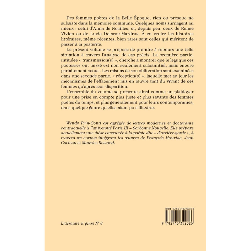 Le présent volume se propose de prendre à rebours une telle situation à travers l’analyse de cas précis. La première partie, intitulée « transmission(s) », cherche à montrer que le legs que ces poétesses ont laissé est non seulement substantiel, mais encore parfaitement actuel. Les raisons de son oblitération sont examinées dans une seconde partie, « réception(s) », laquelle met au jour les mécanismes de l’effacement mis en oeuvre tant du vivant de ces femmes qu’après leur disparition.