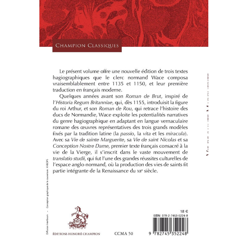 Le présent volume offre une nouvelle éditions de trois textes hagiographiques que le clerc normand Wace composa vraisemblablement entre 1135 et 1150, et leur première traduction en français moderne.