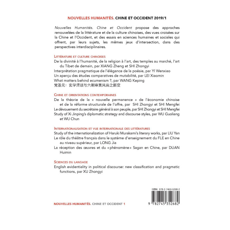 | Collection | NOUVELLES HUMANITES CHINE OCCIDENT |