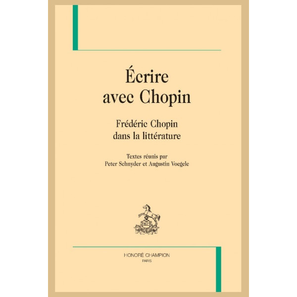 Le présent ouvrage se focalise sur ce que la littérature a pu faire de la personnalité de Frédéric Chopin et de sa musique. Du Chopin de George Sand et d’Eugène Delacroix à celui des auteurs de littérature populaire contemporains (parmi lesquels Frédéric Dard) en passant, entre autres, par le Chopin du librettiste Angiolo Orvieto, par celui des poètes russes de l’âge d’argent, ou encore par celui de musicologues comme Alfred James Hipkins ou Thérèse Marix-Spire, ce volume tente de montrer combien le monde des lettres éclaire le monde des sons, et comment l’écriture dialogue avec la musique de Chopin, l’une enrichissant l’autre.