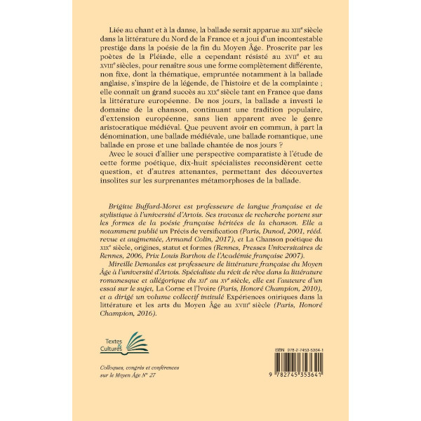 Avec le souci d’allier une perspective comparatiste à l’étude de cette forme poétique, dix-huit spécialistes reconsidèrent cette question, et d’autres attenantes, permettant des découvertes insolites sur les surprenantes métamorphoses de la ballade.
