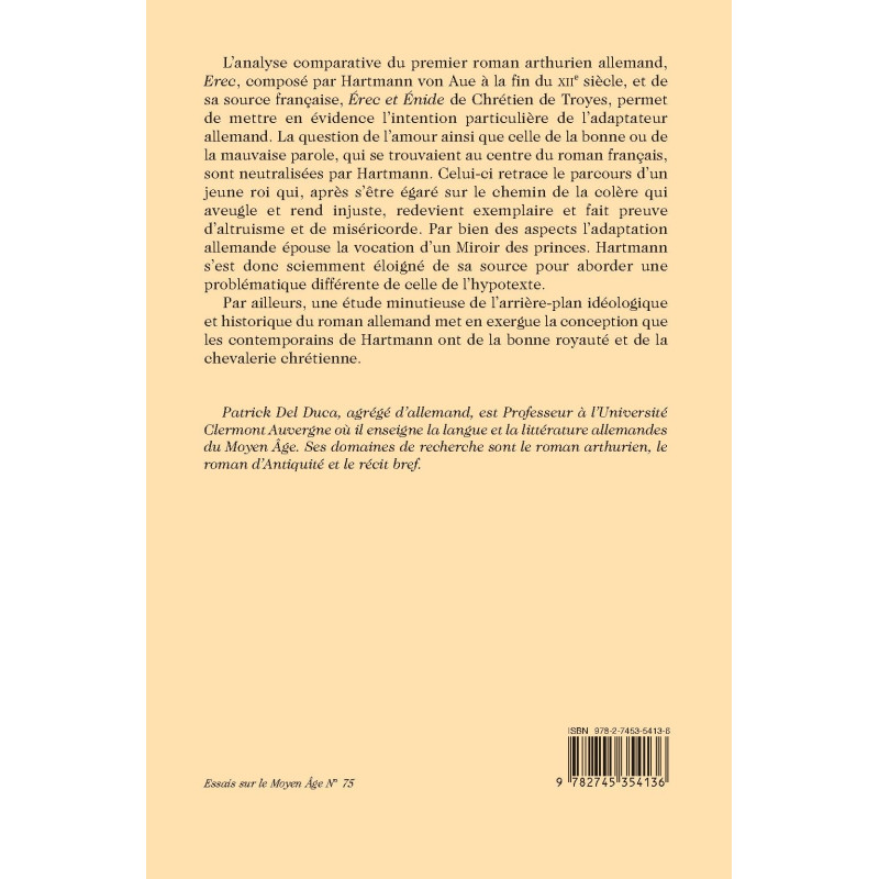 L’analyse comparative du premier roman arthurien allemand, Erec, composé par Hartmann von Aue à la fin du XIIe siècle, et de sa source française, Érec et Énide de Chrétien de Troyes, permet de mettre en évidence l’intention particulière de l’adaptateur allemand. La question de l’amour ainsi que celle de la bonne ou de la mauvaise parole, qui se trouvaient au centre du roman français, sont neutralisées par Hartmann. Celui-ci retrace le parcours d’un jeune roi qui, après s’être égaré sur le chemin de la colère qui aveugle et rend injuste, redevient exemplaire et fait preuve d’altruisme et de miséricorde. Par bien des aspects l’adaptation allemande épouse la vocation d’un Miroir des princes. Hartmann s’est donc sciemment éloigné de sa source pour aborder une problématique différente de celle de l’hypotexte.