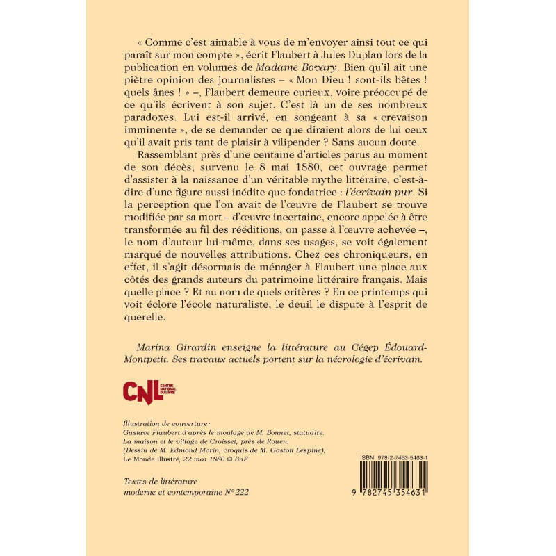 Rassemblant près d’une centaine d’articles parus au moment de son décès, survenu le 8 mai 1880, cet ouvrage permet d’assister à la naissance d’un véritable mythe littéraire, c’est-àdire d’une figure aussi inédite que fondatrice : l’écrivain pur. Si la perception que l’on avait de l’œuvre de Flaubert se trouve modifiée par sa mort – d’oeuvre incertaine, encore appelée à être transformée au fil des rééditions, on passe à l’oeuvre achevée –, le nom d’auteur lui-même, dans ses usages, se voit également marqué de nouvelles attributions. Chez ces chroniqueurs, en effet, il s’agit désormais de ménager à Flaubert une place aux côtés des grands auteurs du patrimoine littéraire français. Mais quelle place ? Et au nom de quels critères ? En ce printemps qui voit éclore l’école naturaliste, le deuil le dispute à l’esprit de querelle.