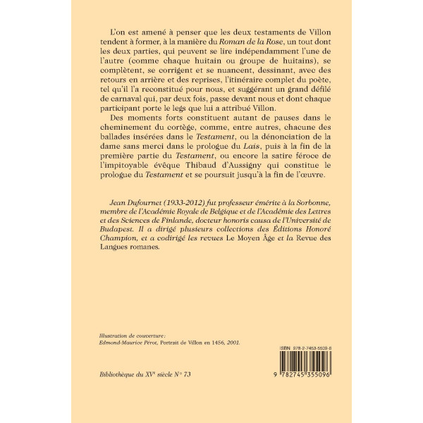 Jean Dufournet (1933-2012) fut professeur émérite à la Sorbonne, membre de l’Académie Royale de Belgique et de l’Académie des Lettres et des Sciences de Finlande, docteur honoris causa de l’Université de Budapest. Il a dirigé plusieurs collections des Éditions Honoré Champion, et a codirigé les revues Le Moyen Âge et la Revue des Langues romanes.